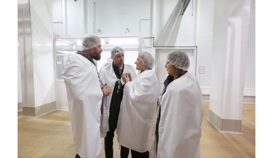 На СООО «Белсыр» Иван Вежновец ознакомился с ходом выполнения импортозамещающего инвестпроекта по технической модернизации цеха №2. По итогам реализации проекта будет расширена линейка выпускаемой продукции, создано более 20 рабочих мест. Калинковичский мясокомбинат стал участником пула «Региональной инициативы» и реализует проект по строительству цеха по первичной переработке крупного рогатого скота и свиней. С руководством компаний Первый замминистра обсудил текущие вопросы и задачи развития.