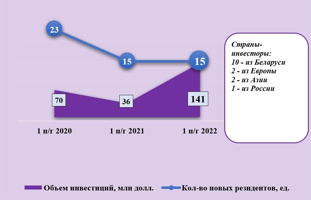 В I полугодии 2022 г. состав резидентов свободных экономических зон пополнился 15 новыми предприятиями с объемом заявленных инвестиций 141 млн. долларов и планами по созданию 760 новых рабочих мест.